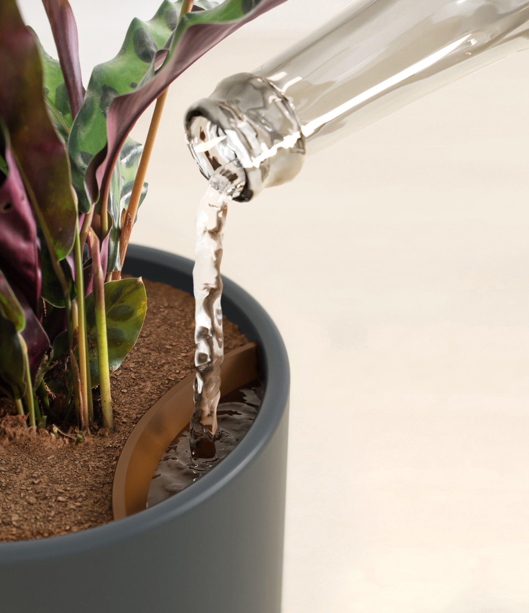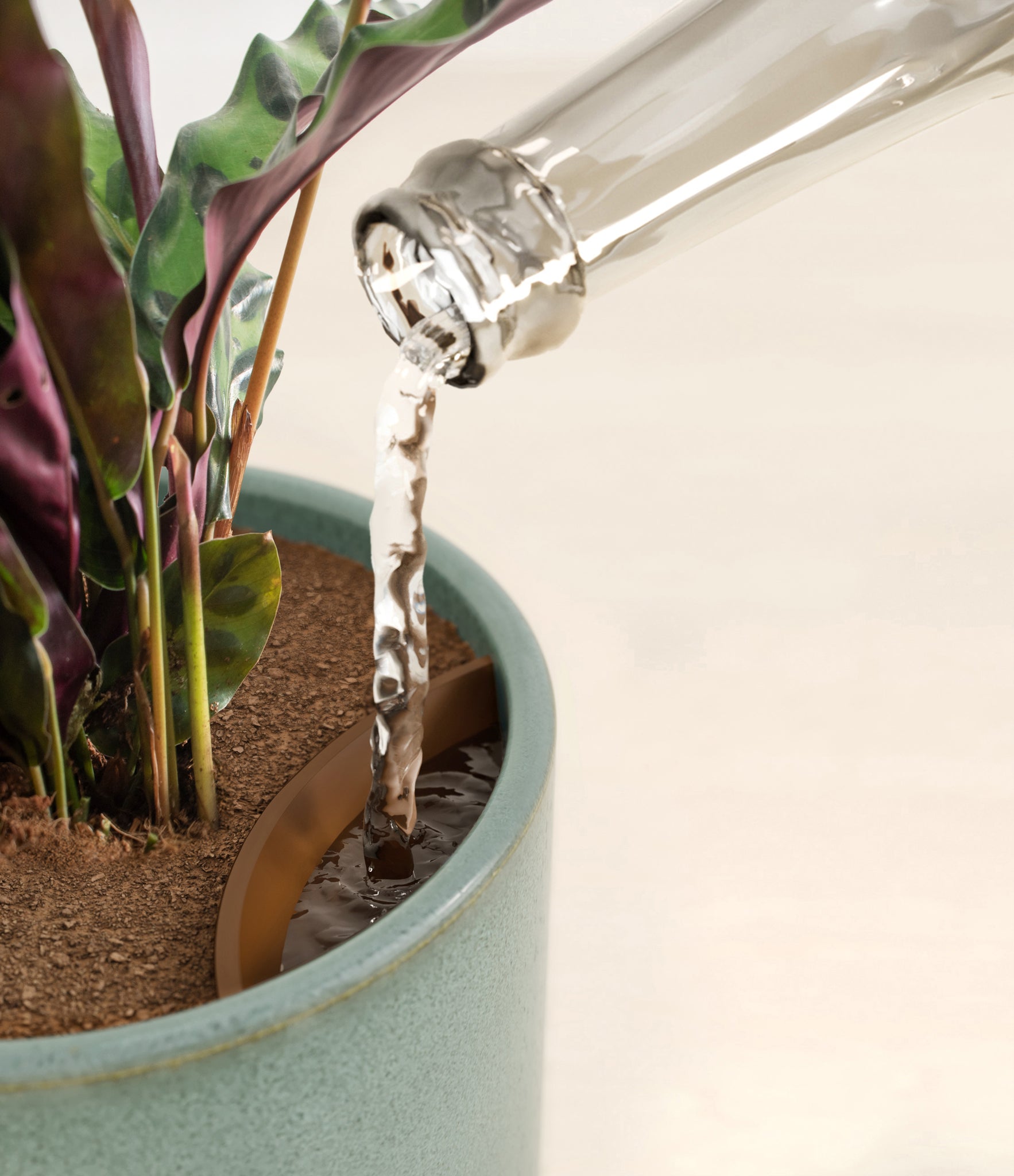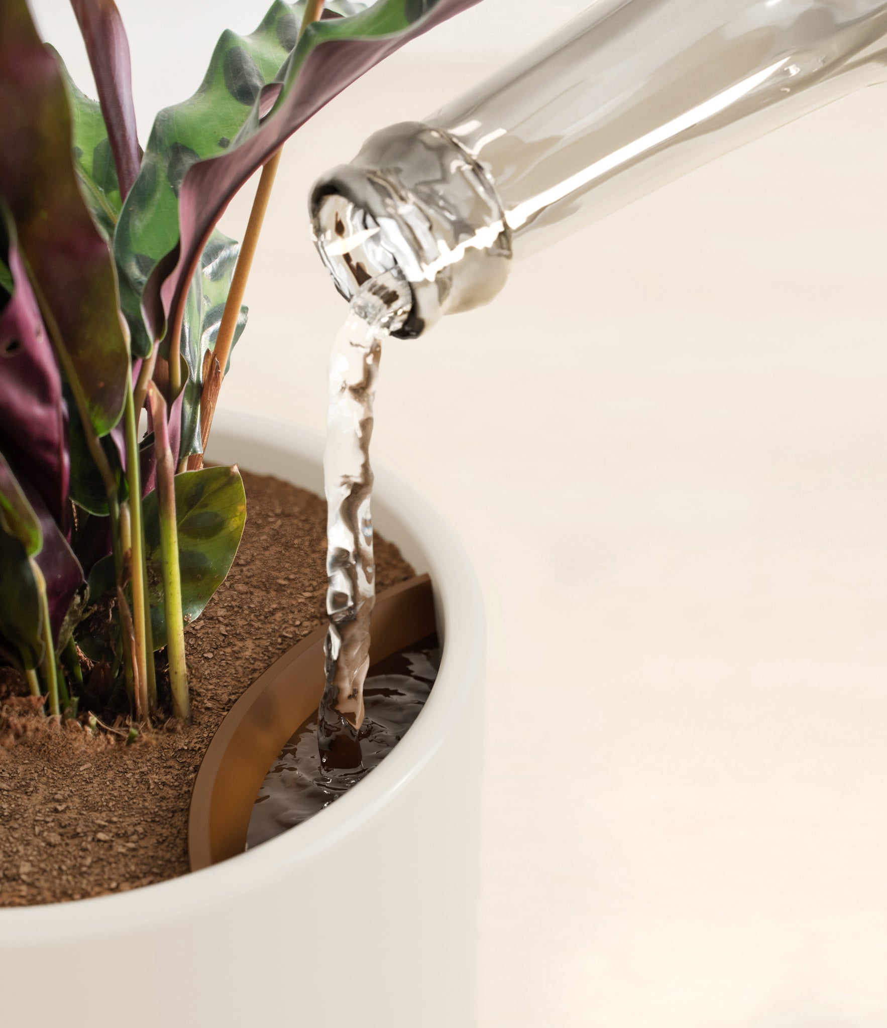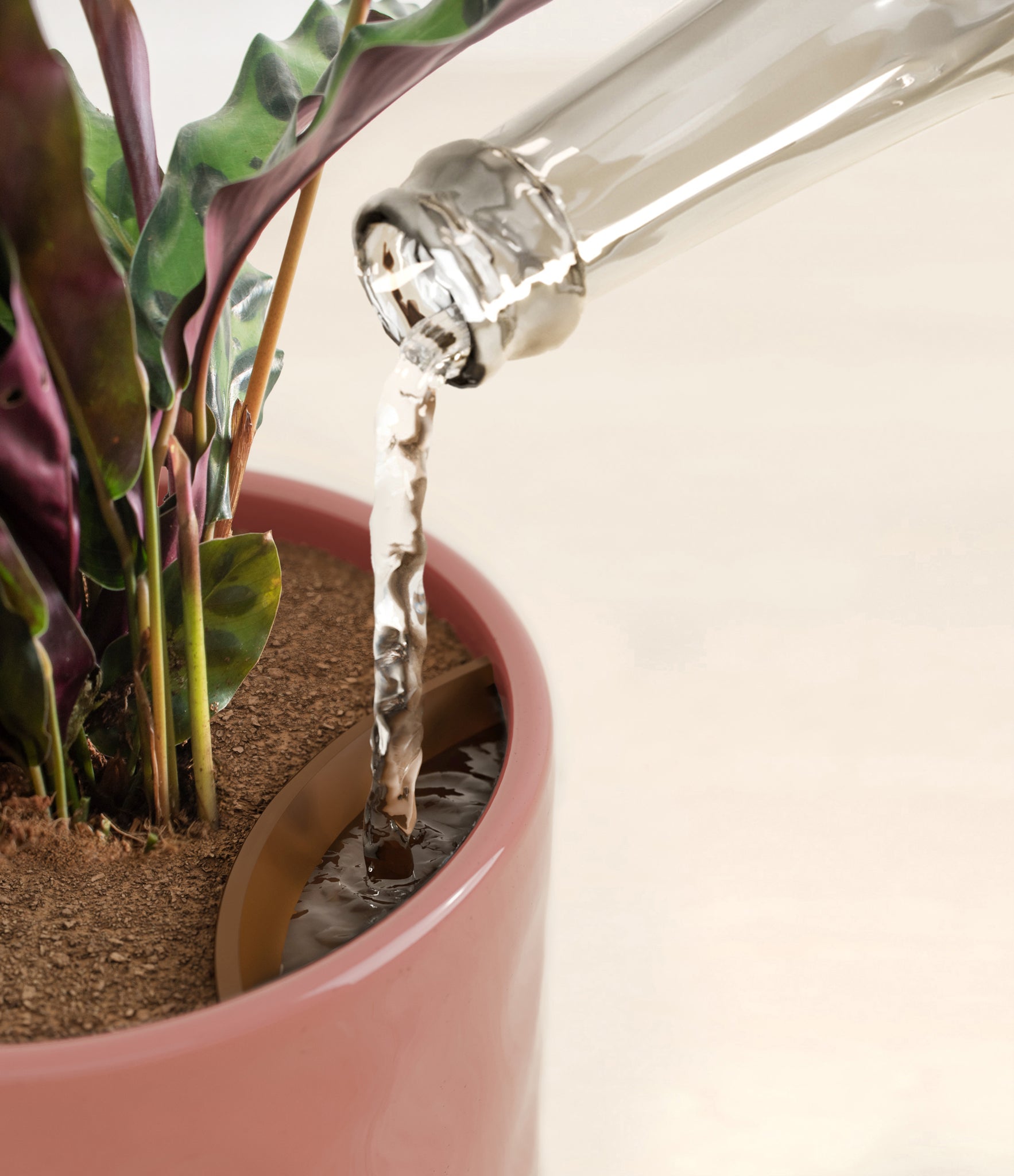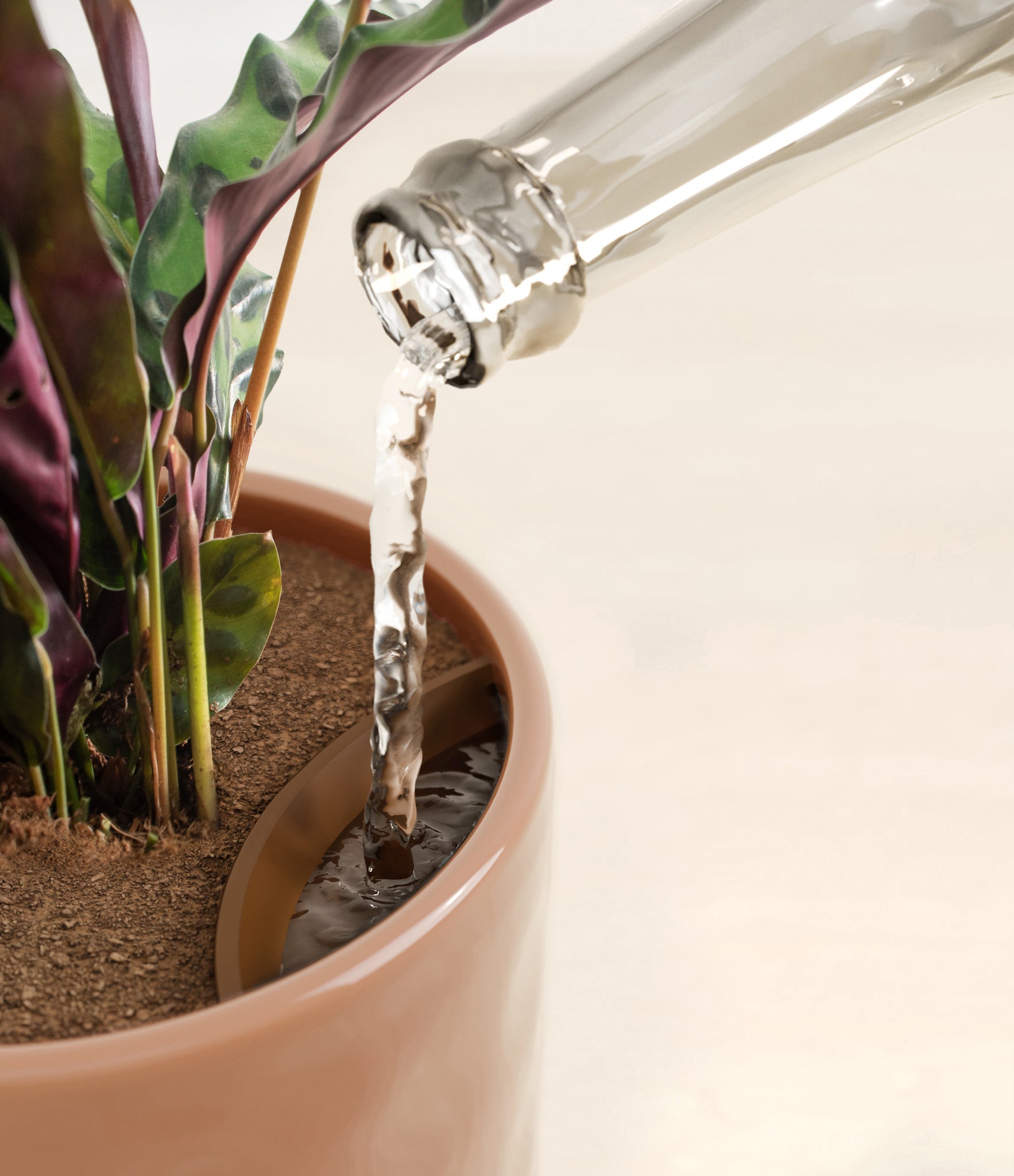 Native to the Amazonian jungles of South America, Rattlesnake Calathea wears an eccentric reptilian pattern on its leaves, with a plum underside and lush green brushstrokes on top. It belongs to the Marantaceae family, known as ‘Prayer Plants’, which much like humans and unlike most plants, have a wake-and-sleep cycle according to a circadian rhythm. This means its leaves move upwards during the night and downwards throughout the day in search of the sun.