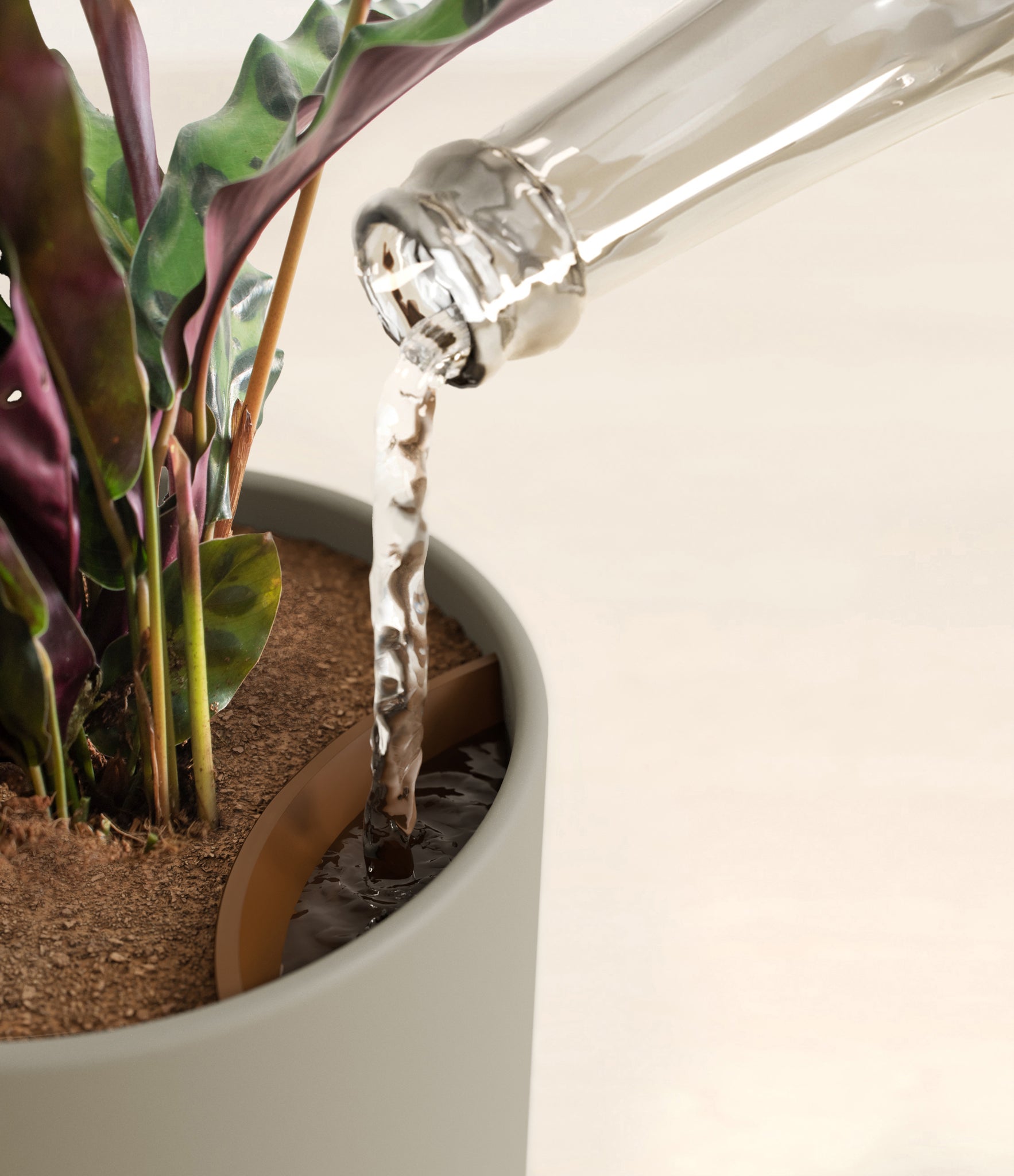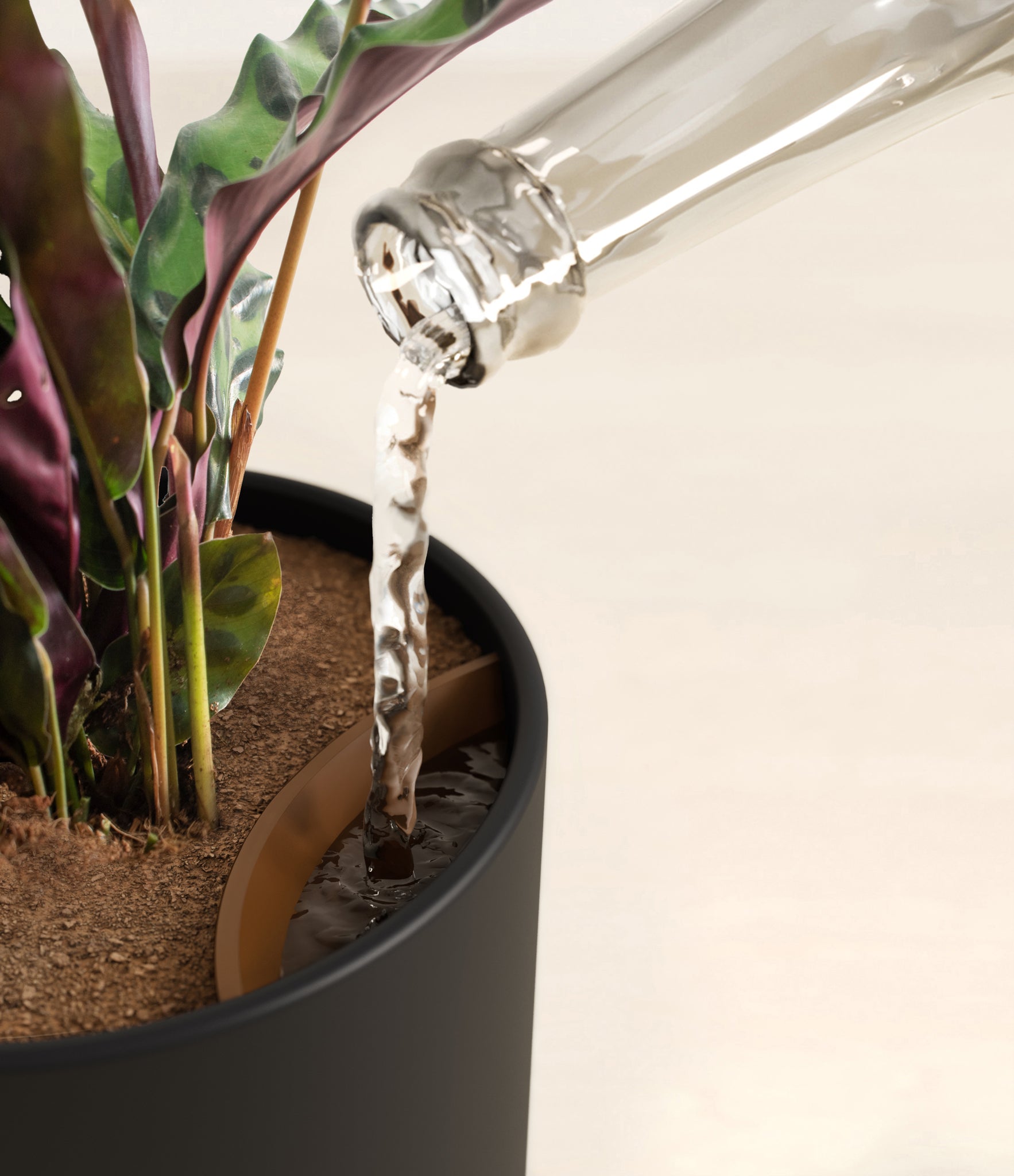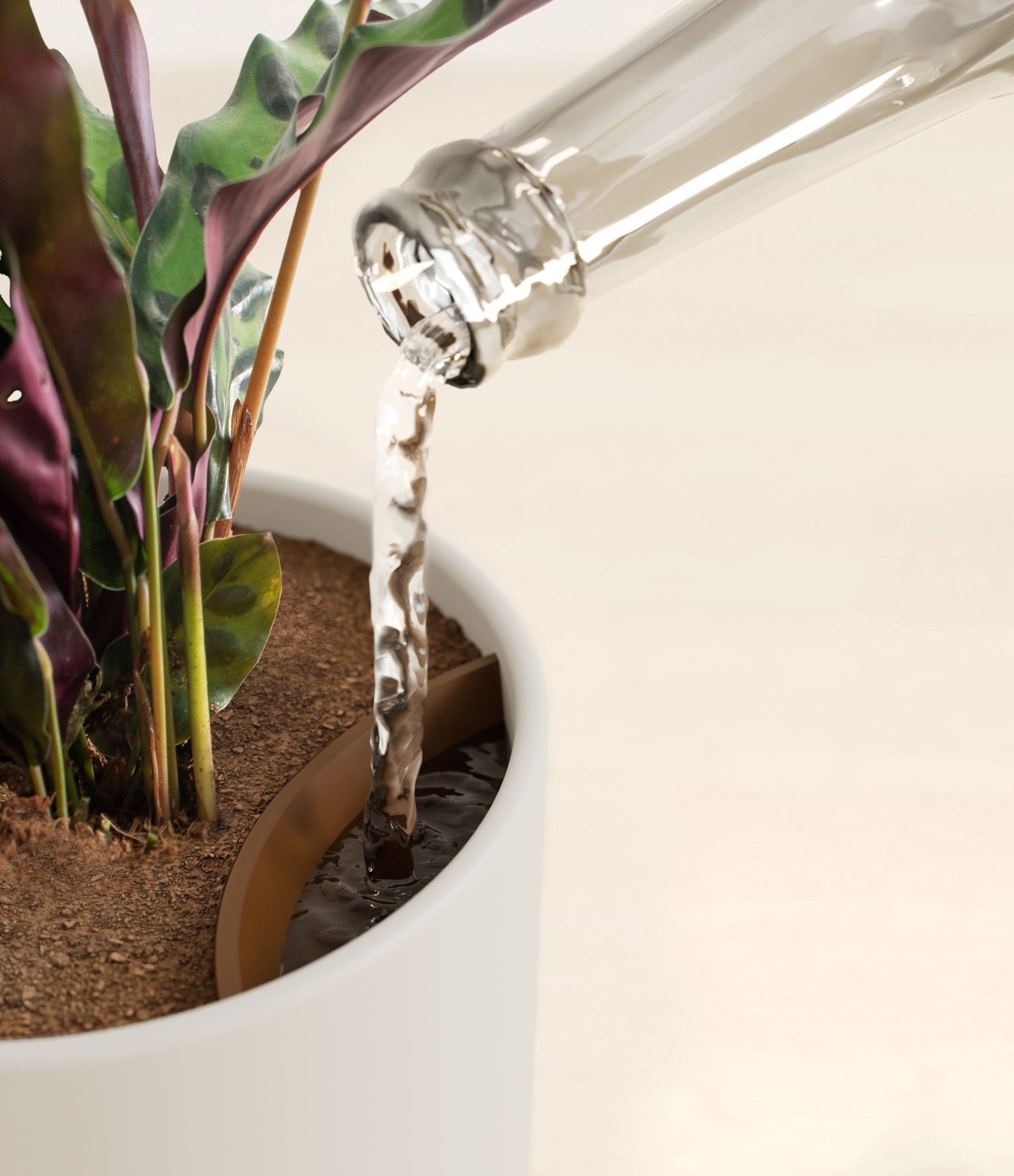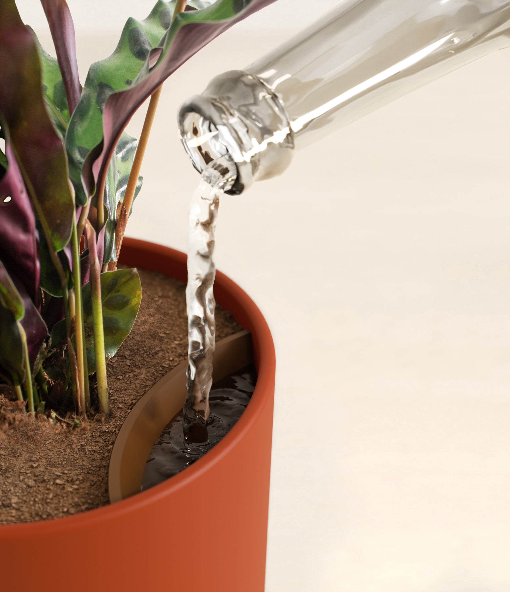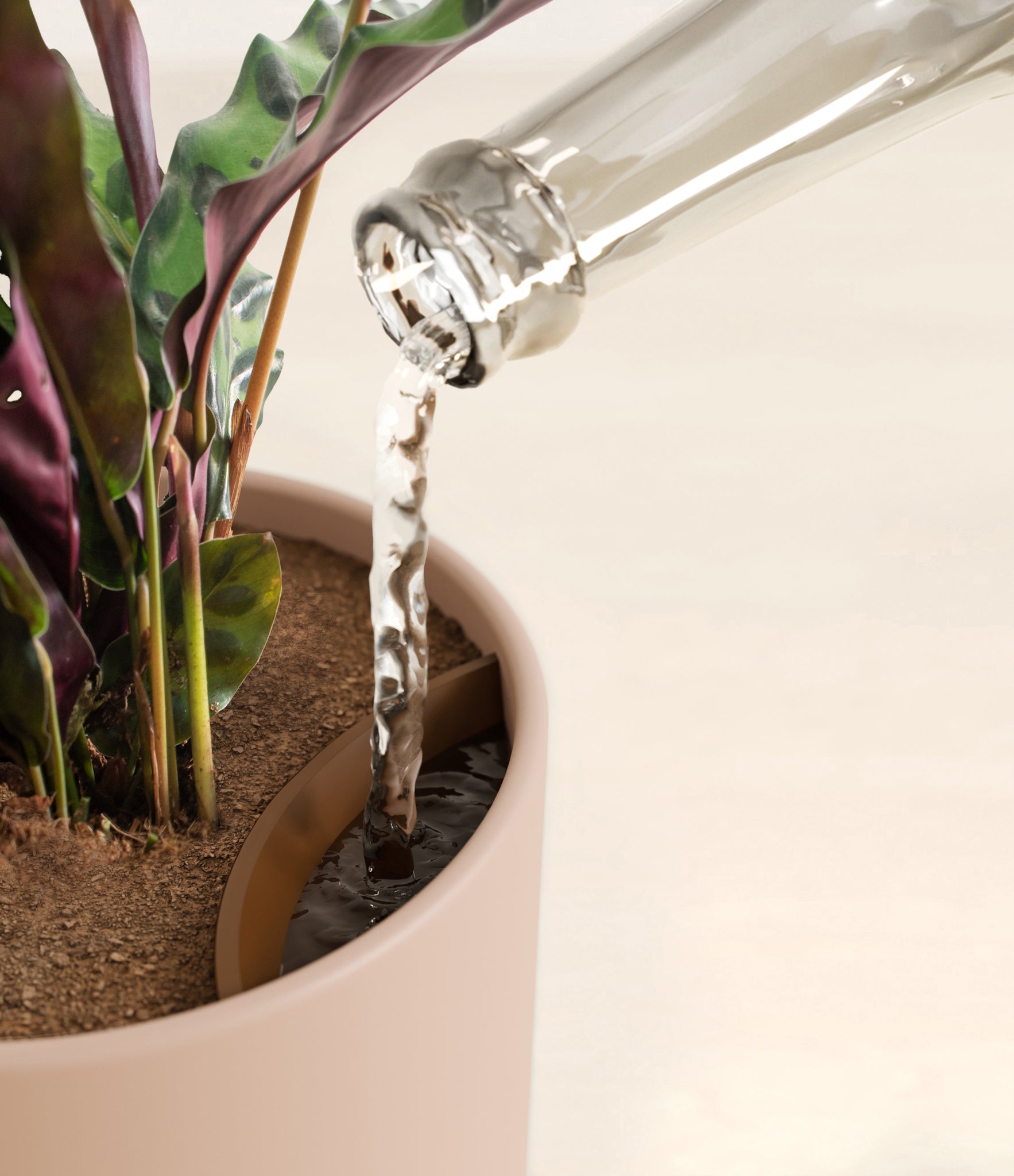 Native to the Amazonian jungles of South America, Rattlesnake Calathea wears an eccentric reptilian pattern on its leaves, with a plum underside and lush green brushstrokes on top. It belongs to the Marantaceae family, known as ‘Prayer Plants’, which much like humans and unlike most plants, have a wake-and-sleep cycle according to a circadian rhythm. This means its leaves move upwards during the night and downwards throughout the day in search of the sun.