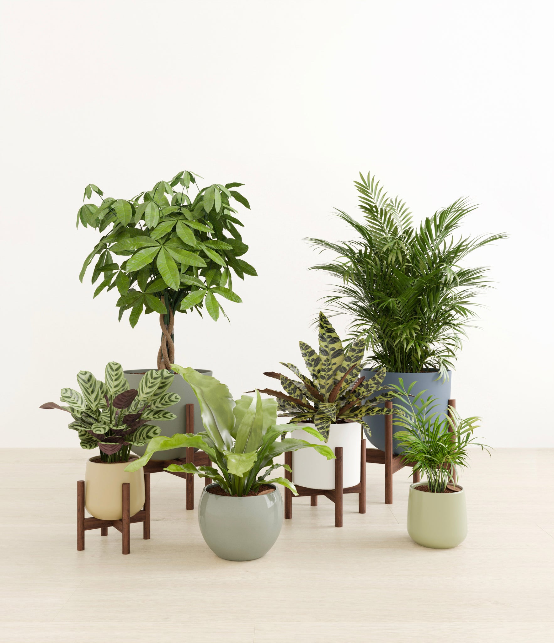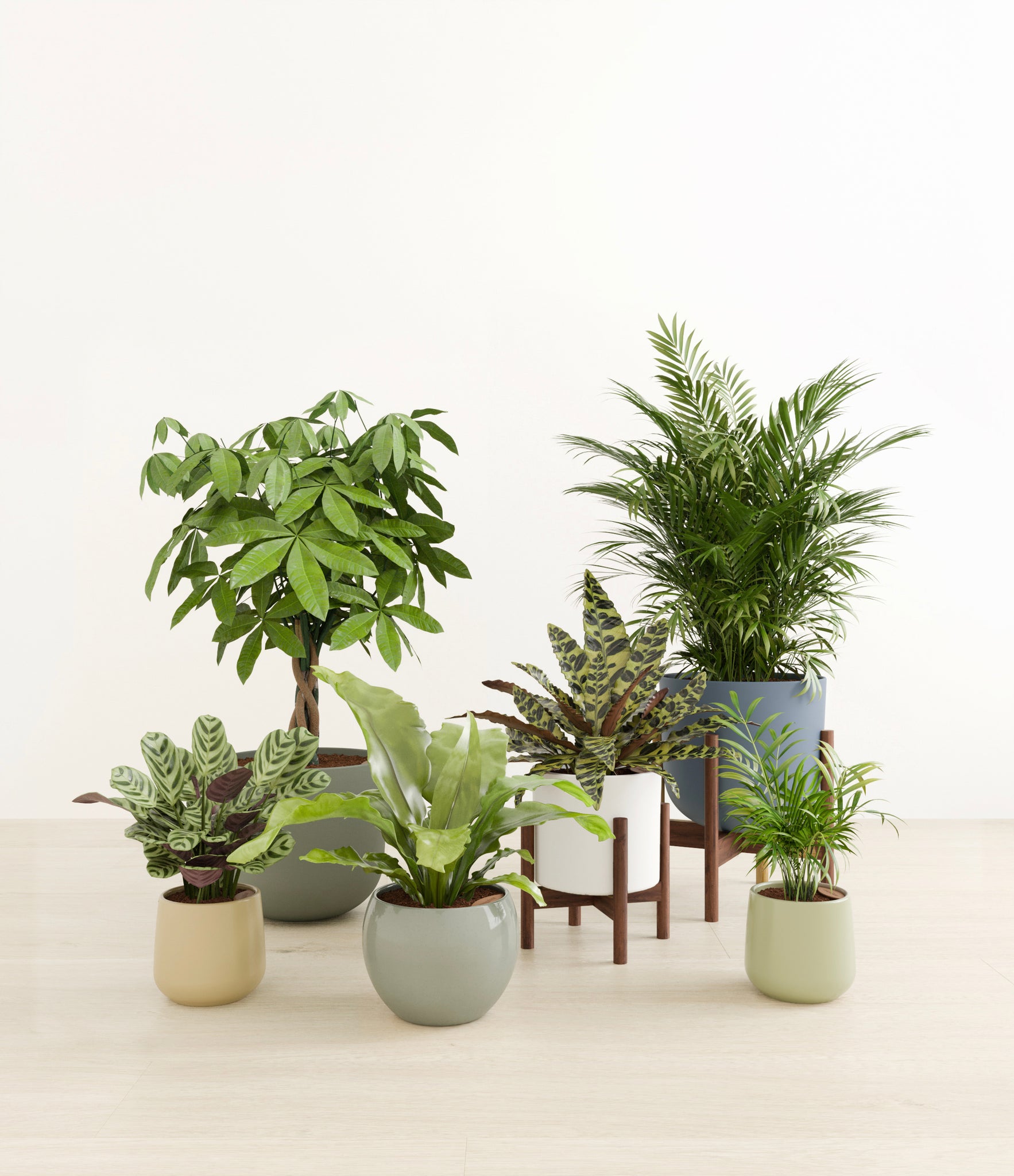 In this collection, you’ll receive six elegant, pet-friendly houseplants that make any indoor space a natural sanctuary. This set includes a small Marxii Calathea – wearing an eccentric reptilian pattern on its leaves; a small and large Parlor Palms requiring little light to deliver absolute radiance; a medium Birds’ Nest Fern bursting with bright green, wavy fronds in a fluttering rosette; a medium Rattlesnake Calathea, wearing its signature reptilian pattern; and a large Money Tree with leaves and a trunk symbolizing good fortune and prosperity.